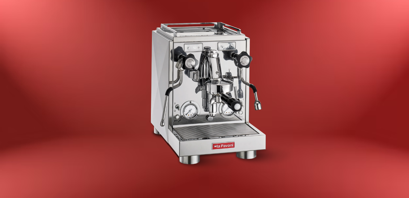 This Evolution semi-professional espresso machine comprises a stainless steel body, cool-touch steam wand, dual boilers, dual PIDs and rotary knob for precise temperature control.